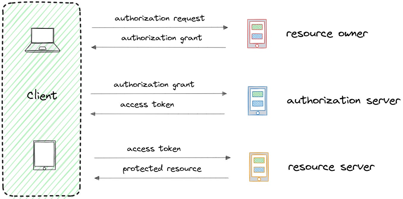 In real-world systems, the resource server is often an API gateway that sits in front of multiple backend services. Clients call the API gateway, which works as a single entry point. The gateway validates access tokens and directs requests to the right backend services. From the client’s perspective, the API gateway is the resource server, even though multiple services are behind it.