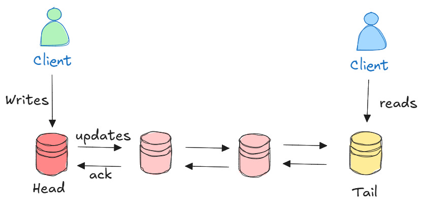 Head: The first server in the chain. It receives all write requests from clients and starts processing them.