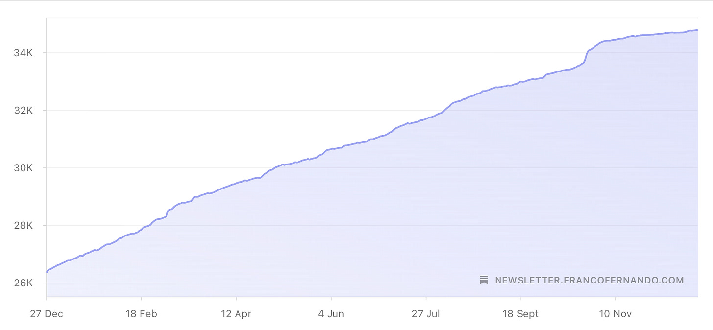 As of today, this newsletter has 34,791 readers, of whom more than 9,000 have joined in the past year alone. I want to give special thanks to paying subscribers, who get full access to all deep-dive articles. This newsletter is run by a solo software engineer, and none of this would be possible without your support.