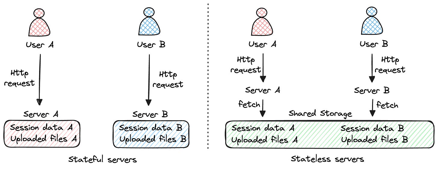 Before talking about specific solutions, we need to understand what makes a service stateless or stateful. The difference is simple but very important.
