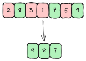 - Sorting everything: You could sort the entire dataset and pick out the last k items. This requires O(n log n) comparisons and might need extra memory depending on the sorting algorithm. It works, but you're putting in a lot more work than is needed.
