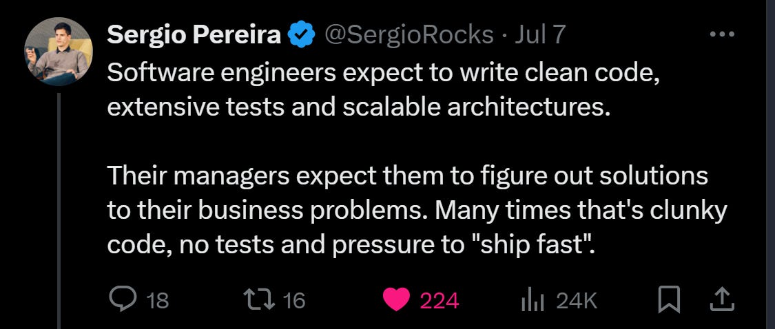 Every decision in software engineering involves tradeoffs. Senior engineers must balance various factors to make informed decisions.