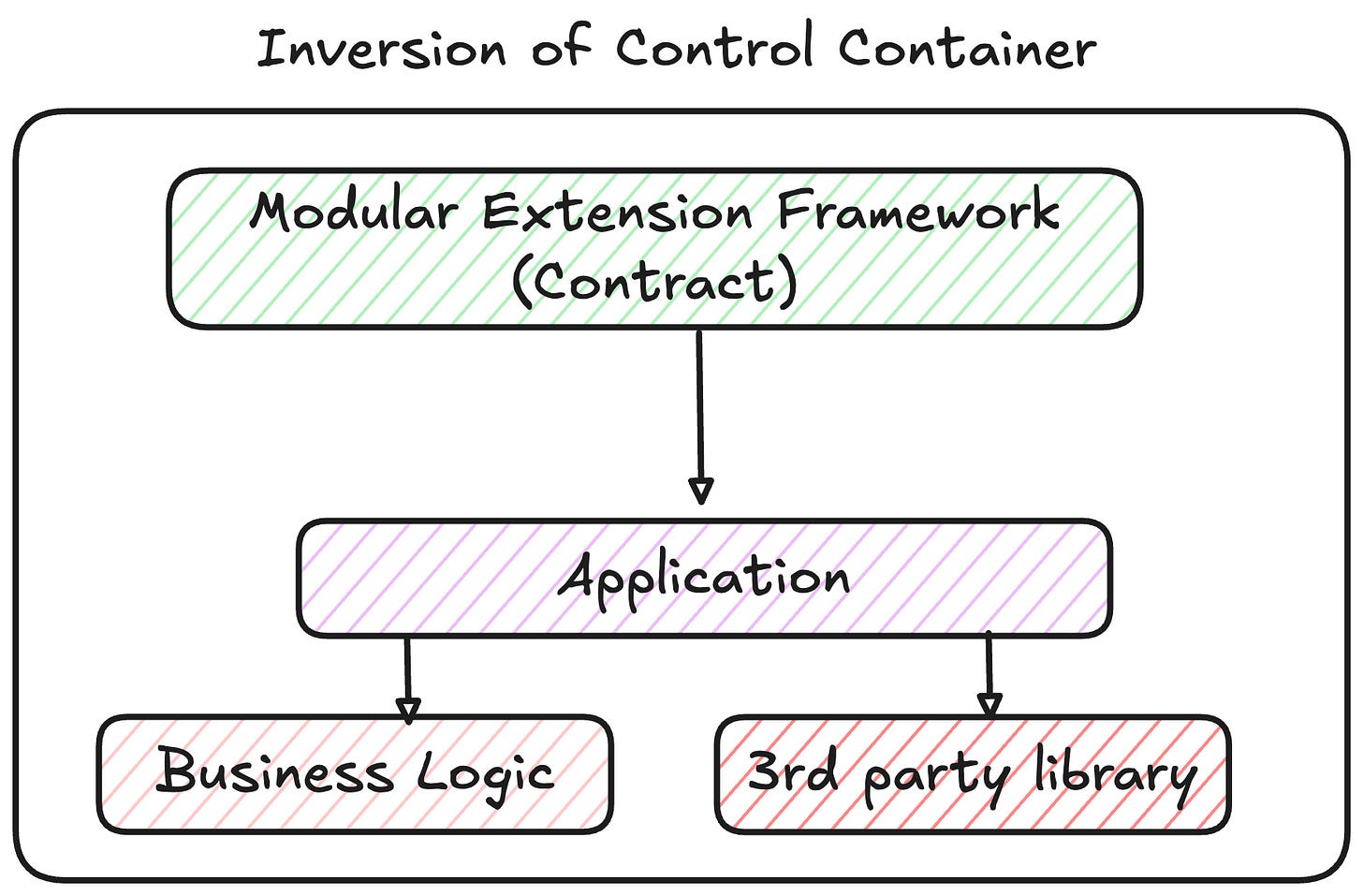 This is Inversion of Control. You’re not in control anymore. The framework is. A good Inversion of Control framework has a few key characteristics. You can create plugins or extensions. Each plugin is independent and can be added or removed at any time. The framework can auto-detect these plugins or provide a way to configure which ones should be used. The framework defines interfaces for each plugin type and isn’t coupled to the plugins themselves.