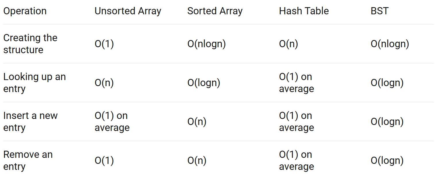 Now that we have gone through the main data structures, let’s put them side by side and see how they compare.