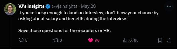 A things that should always be clarified during the preliminary calls with the recruiter or HR is the salary range. If the expectations were different, the whole interview process would be a waste of time.